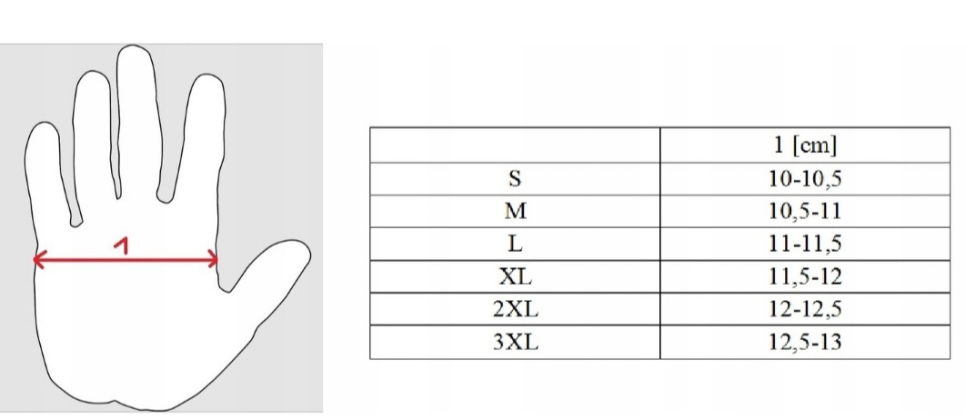 Podany wymiar jest to szerokość rękawicy a nie dłoni. Proszę zatem przy wyborze rozmiaru, wybrać rozmiar większy rękawic !. 🙂
